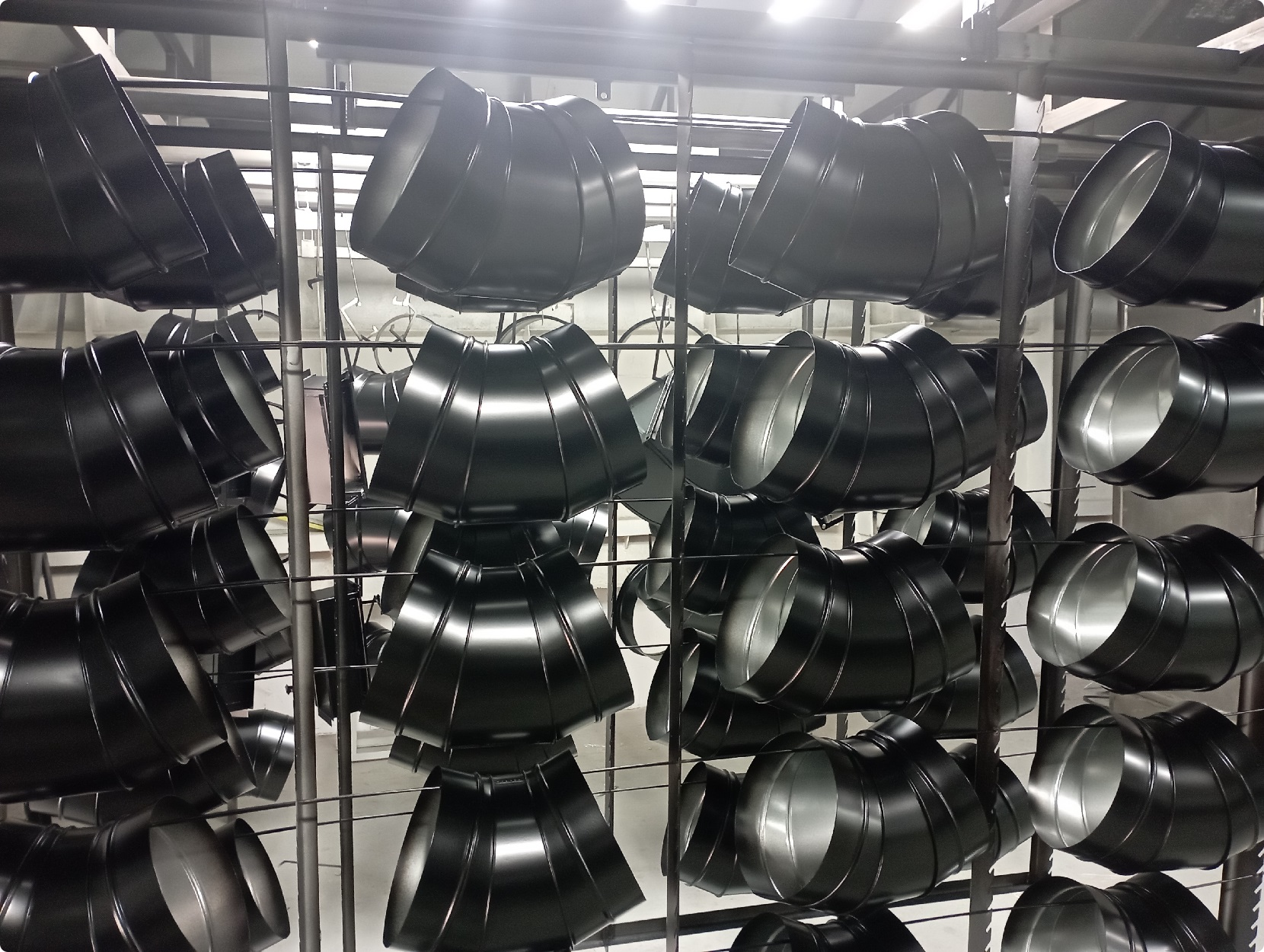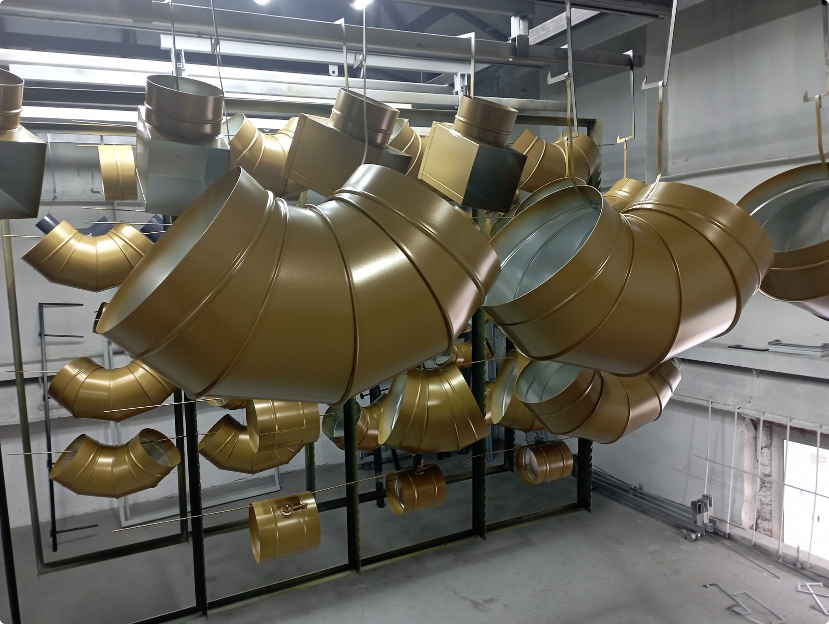 Изготовление абсолютно всей вентиляционной продукции происходит на наших производственных мощностях. Помимо цеха по производству, у нас есть гибочный цех, лазерная резка и порошковая покраска.