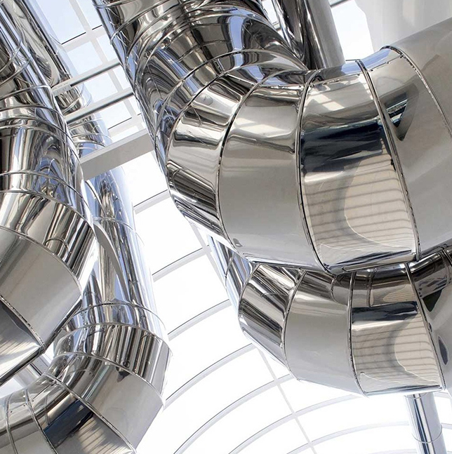 Наше производственные возможности позволяют изготовить все серийные элементы стальных систем вентиляции: воздуховоды и фасонные изделия всех сечений, фильтры, кухонные вытяжные зонты.